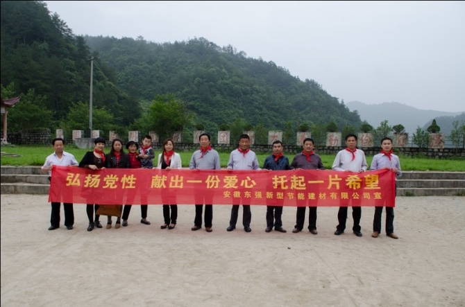 公司在董事長倪修倫、總經(jīng)理劉月琴帶領下,以“弘揚黨性、獻出一份愛心、托起一片希望”為主題,一行十二人驅車四百公里,來到美麗的大別山區(qū)——岳西縣河圖鎮(zhèn)涼亭小學,開展捐資助學活動。一到校園,我們受到學校師生的熱烈歡迎,孩子們的臉上露出了燦爛的笑容,老師們臉上寫滿了喜悅。