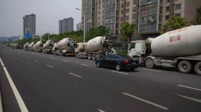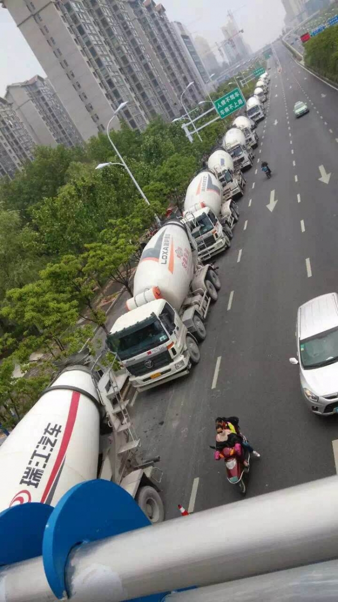 合肥綠地中心位于高鐵路與廬州大道交口,項(xiàng)目定位為55萬方安徽首席高鐵綜合體,產(chǎn)品由一棟200多米超高層,三棟國際甲級辦公樓,4棟城市精英中央官邸和LOHAS商業(yè)綜合體組成。 該項(xiàng)目主樓筏板為C45P8砼,核心筒處深度達(dá)8.9m,砼體量為12000m3。主樓高220m,1-22層墻柱為C60砼,22層以上墻柱為C50砼。 下圖為澆筑該項(xiàng)目主樓12000m3大體積同時(shí)現(xiàn)場等待的砼攪拌車。